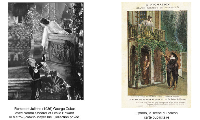 [J'ai été stupéfait de découvrir, en faisant une recherche iconographique sur le balcon, que les artistes ont quasi systématiquement illustré les deux scènes, de Roméo et Juliette ou de Cyrano, en représentant la confrontation des corps, enlacements et baisers, ce qui est un presque contresens pour ces deux grandes histoires de frustration !]