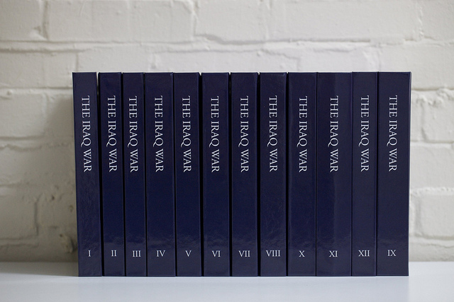 Toutes ces luttes de vocabulaire, tous ces arguments empiriques ont inspiré James Bridle, un Américain à l’origine d’un projet qui relève de la performance sans oublier d’être signifiant. Iraq War: A Wikipedia Historiography retrace en 12 volumes l’ensemble des modifications apportées à la notice sur la guerre en Irak depuis 2003. Au total, c’est pas moins de 12 000 entrées qui sont compilées sur 7000 pages, inscrites dans la mémoire digitale et désormais couchées sur le papier. Bridle justifie ainsi sa démarche: