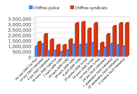 Owni also offers an explanation of its own on why the number of participants to a strike is so remarkably different depending on the source.