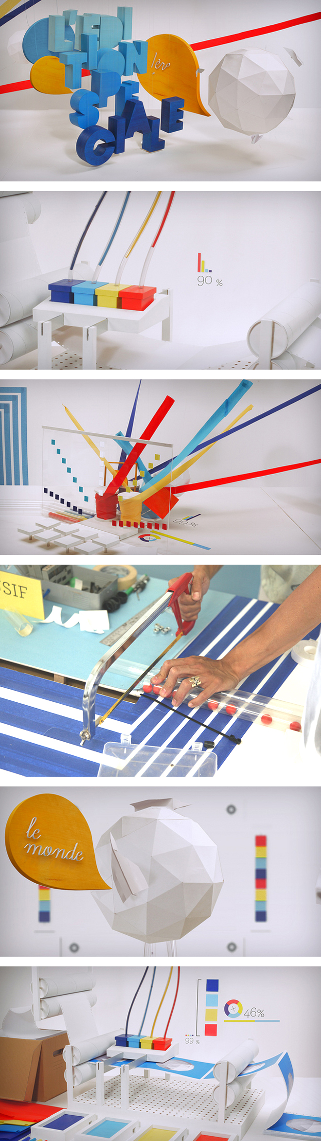 Cette semaine, j’ai eu la bonne surprise de découvrir le making-off de la vidéo du générique de l’émission “L’édition spéciale” de Canal +. C’est en tout, 3 mois et demi de stop-motion, de découpage, de pliage, de papiers de couleur et de montage sur After Effects, un sacré chantier donc. On notera que c’est Greg Barth qui était aux manettes et que toute la vidéo a été tournée avec 2 Canon 5D Mark II. En dehors de cette création tout en papier, ils se sont donc donnés les moyens pour la mettre en image :