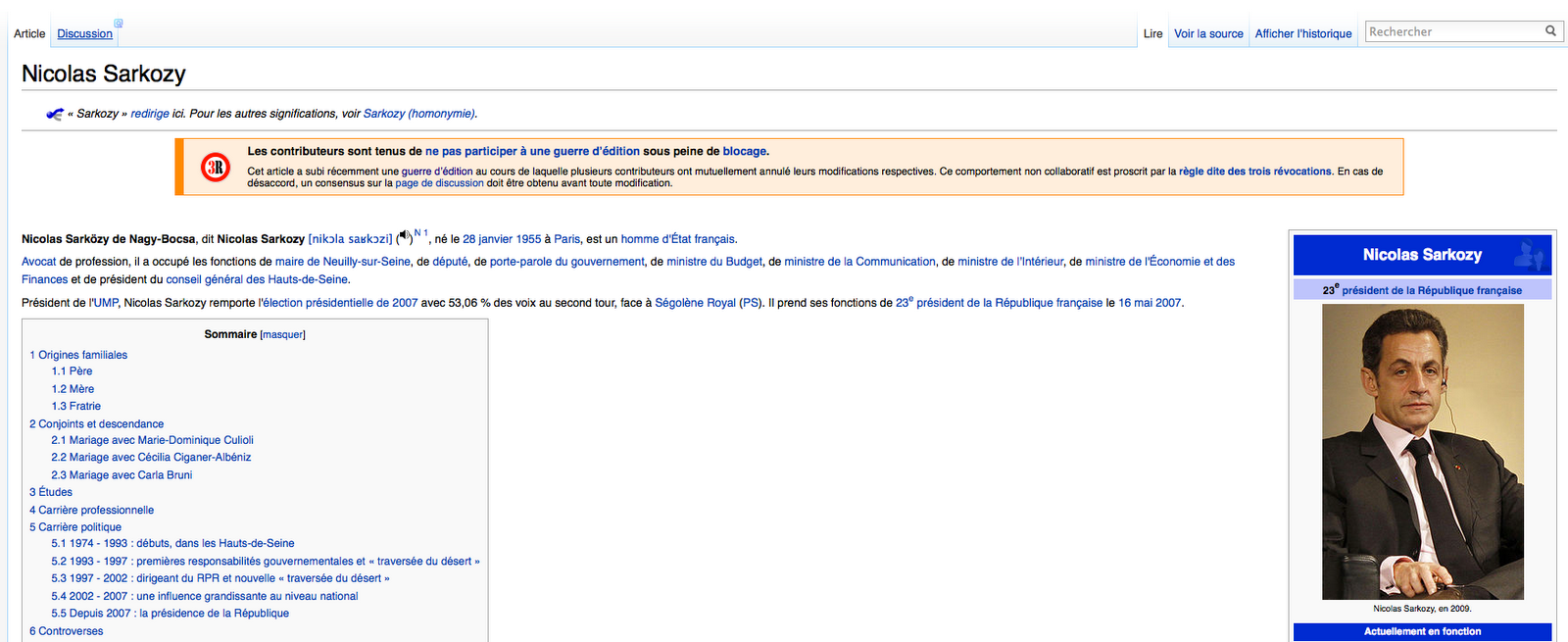 Néanmoins, cela arrive. L’un des exemples les plus célèbres est certainement celui de la page concernant le réacteur pressurisé européen, thème abordé lors du débat entre Ségolène Royal et Nicolas Sarkozy lors des présidentielles en 2007. Leurs propos avaient déclenché des discussions enflammées entre les contributeurs, pour savoir, entre autres, si le fameux réacteur était de troisième ou de quatrième génération. Résultat: “ 40 modifications en moins de 2 heures”.