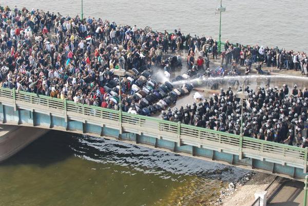 [17h41] Quelques images amateurs des manifestations en Egypte ont réussi à sortir du pays. Ces images frappantes montre l’affrontement entre police et manifestants sur un pont du Caire.