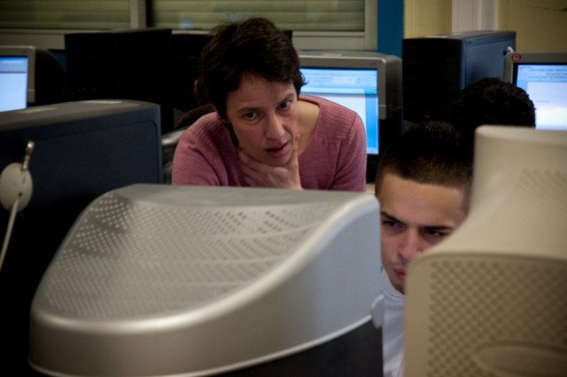 Des relations souvent conflictuelles, « plus que ce que je ne pensais », explique Cécile, que la séance de ce mardi va tenter d’adoucir par la communication épistolaire. À ce détail près qu’en guise de bloc de feuille, c’est sur un antique ordinateur avec écran à tube cathodique que chaque élève va taper sa lettre. Au moins, la connexion marche. Ali, enfin pardon Fatima Coulibaly tire un peu la langue : que raconter à Tony de Oliveira ? Il se renseigne sur les événements qui les unissent via le site, ça vient : « je commence à avoir une idée pour la fin… tragique, ça a commencé mal pour elle », justifie-t-il : la pauvre Fatima est veuve, son mari a été assassiné. Ali s’attelle à la tâche, il fourmille d’idées à la fin, lui qui n’écrit jamais d’ordinaire : « on s’amuse plus qu’en cours de français, on n’est pas obligé de suivre un programme, on écrit. », explique-t-il timidement. Des vertus du ludique pour débloquer…
