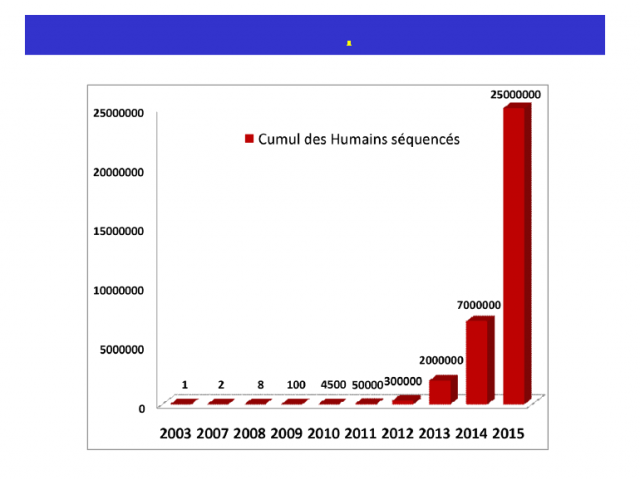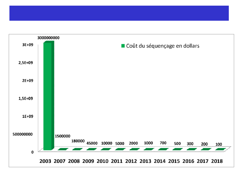 Laurent Alexandre: C’est en train d’exploser. Le coût du séquençage ADN baisse de 50% tous les cinq mois.
