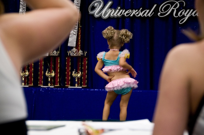 Constatation amère qui saute aux yeux, tous les enfants se ressemblent : blonds, bronzés, sourire figé. Des normes physiques policées et uniformes, qui ne nous évoquent rien de vraiment bon. Puis cette purge infligée à des enfants un samedi matin. Tout ça pour pas grand-chose, de l’argent et cinq minutes de gloire dans un salon d’hôtel. Heureusement, ces concours ne déchaînent pas les foules, les familles viennent de loin pour participer, et ne réunit finalement qu’une cinquantaine de candidates. Le public n’est pas composé d’amateurs de jeunes enfants en maillot, mais de parents chauvins et amis dévoués. Ramenant tout ça à une sorte de club narcissique, une microsociété autosuffisante. Toujours est-il qu’il y aurait beaucoup à dire sur la légitimité morale de ce genre de concours, mais on est aux Etats-Unis et tous les freaks ont leur place au soleil des projecteurs, si petits soient-ils. Et puis les autres riront bien en regardant sur TLC « Toddlers et Tiaras ». La boucle est bouclée, The Show Must Go On.