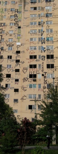 la pixaçao est un mouvement anarchique et éphémère, avec ses caractéristiques propres. Ce n’est pas de l’art. Ce serait se tromper que de la considérer comme de l’art. Je pense que la pixaçao est un reflet des conditions actuelles dans lesquelles nous vivons.