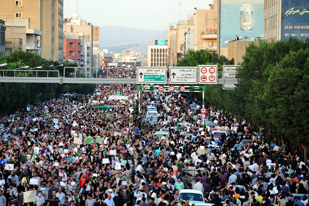 Téhéran, dans la nuit entre le 12 et le 13 juin 2009. À quelques mètres de la place Fatemi, au centre de la capitale iranienne, une petite rue est noire de monde. La foule s’agite et bruisse d’une rumeur. En ce jour d’élection présidentielle, les partisans de Moussavi, candidat de l’opposition, ont la mine défaite devant l’un de ses QG de campagne. Il est minuit trente, la rumeur donne vainqueur le président sortant, Mahmoud Ahmadinejad. Après une folle campagne, l’annonce assomme le groupe. Un religieux prend la parole. Il est écouté par la ruelle silencieuse, attentive, quoique nerveuse de colère. Le discours dure trois minutes. Il est acclamé par les slogans de la campagne, bientôt balayés par la première charge des forces de sécurité. En uniforme anti-émeute, un groupe de policiers fond sur les militants qui se dispersent immédiatement dans les ruelles sombres. La répression commence.