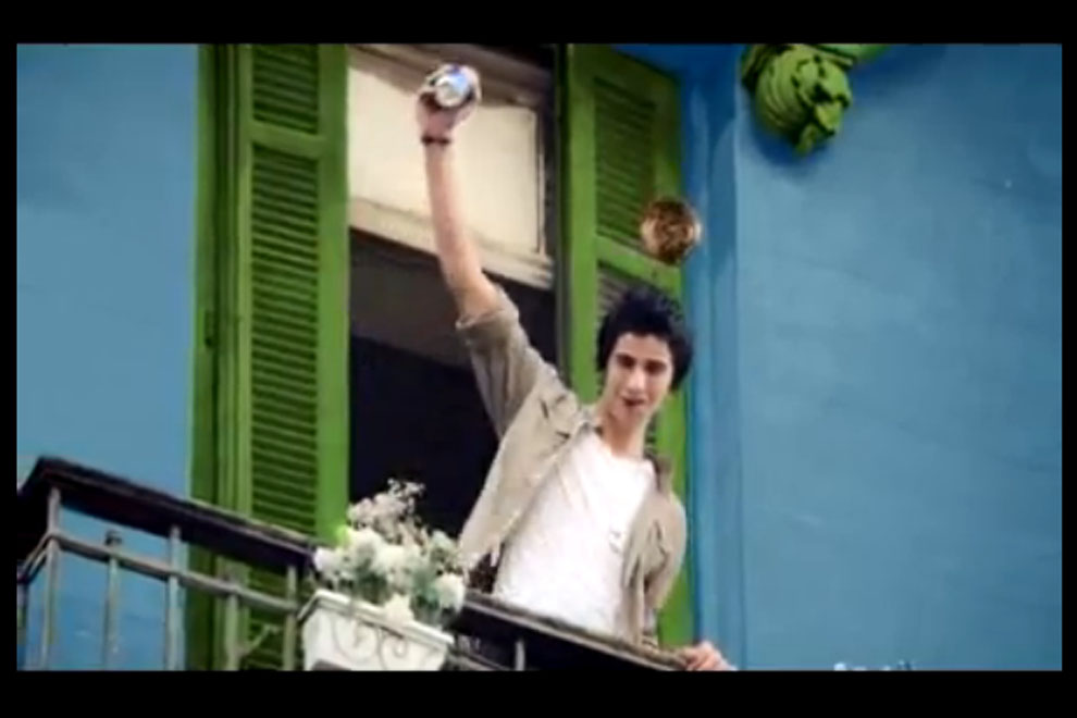 Pepsi pour commencer (30 s), avec ces jeunes des classes moyennes (forcément révolutionnaires) qui ont tous des idées en surfant avec la technologie moderne (ordis et téléphones portables) et qui, littéralement parlant, « redonnent des couleurs à la ville ». Un peu subliminale, l’allusion à la révolution du 25 janvier n’est pas bien loin : introduit par l’image d’un journaliste à la télé sur fond de paysage urbain, le lien avec les événements est implicite avec l’image, presque en fin de clip, du personnage initial saluant depuis son balcon un rassemblement qui pourrait bien être une révolution (qui ne dit pas tout à fait son nom malgré tout)…