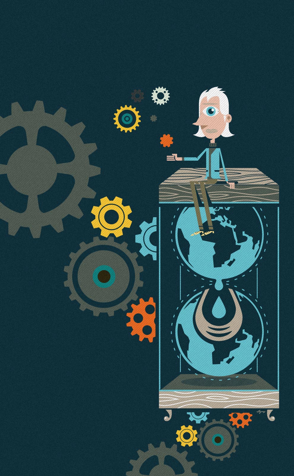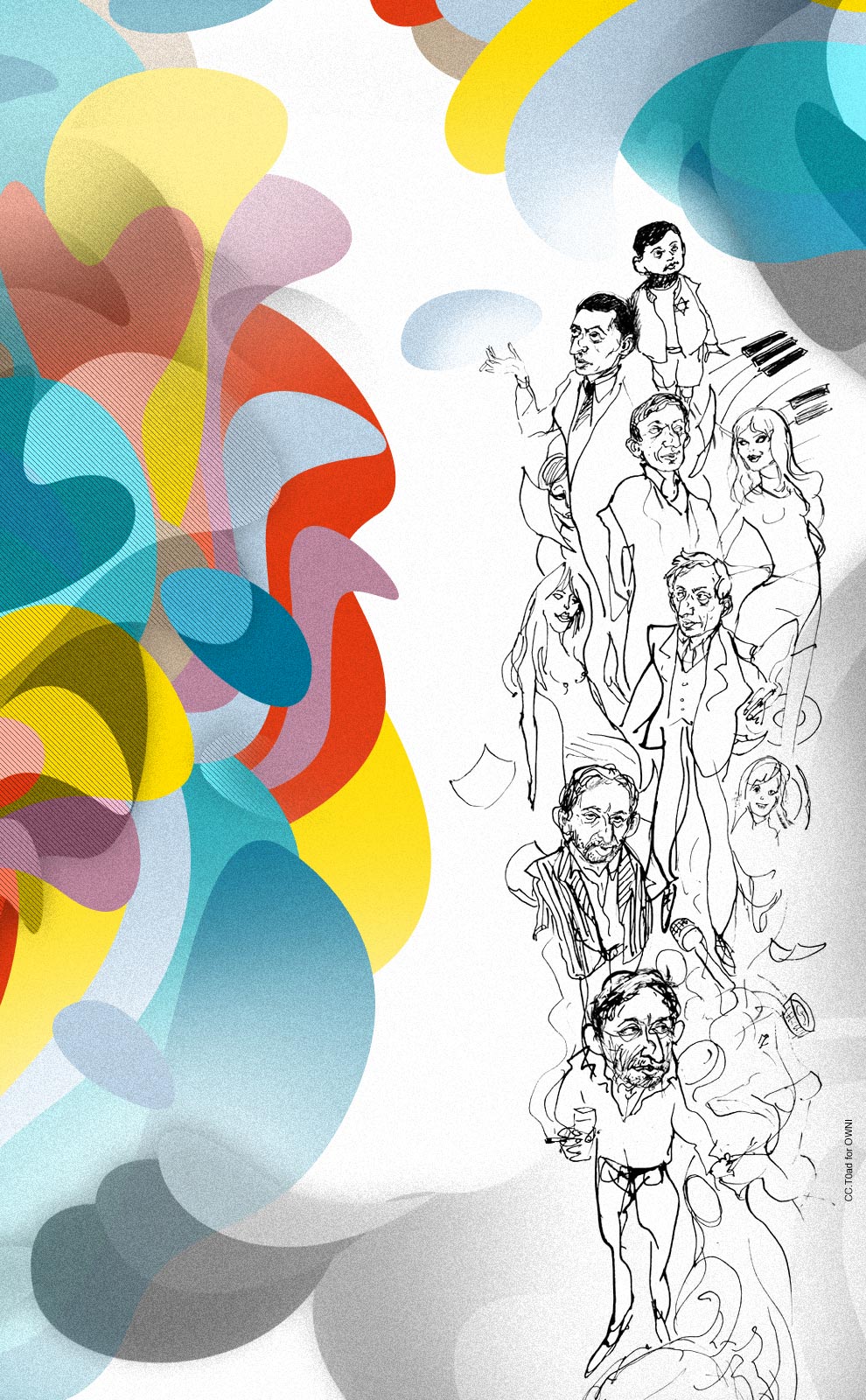 Julian Assange et la "machine" WikiLeaks. Image Loguy pour OWNI. Cliquez sur l'image pour accéder au poster intégral.