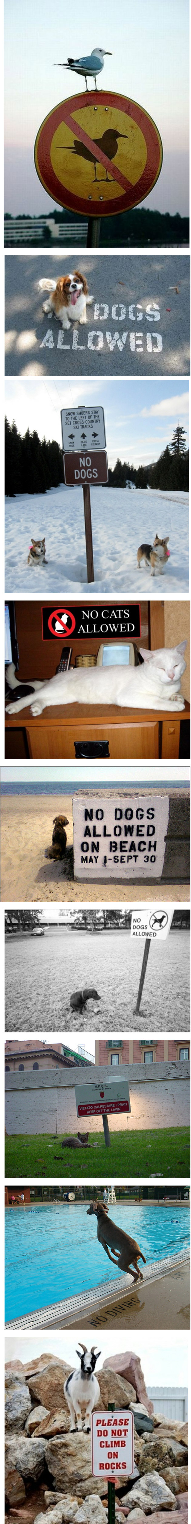 On termine sur un WTF animalier ET signalétique avec cette série de photos publiée sur un blog qui recense les animaux qui enfreignent les panneaux et la signalétique des espaces publics ! Amis & collègues designers… et si vous conceviez de la signalétique pour animaux, à quoi cela ressemblerait-il ? Pas à ces panneaux en tous cas ;-)
