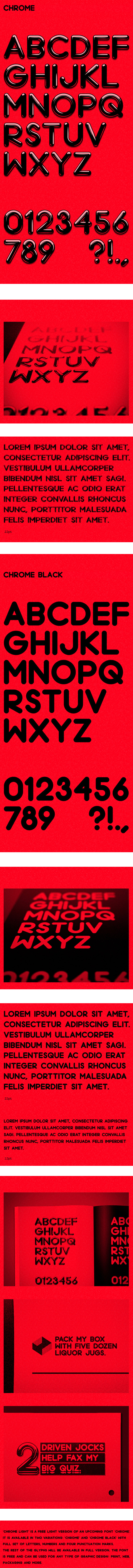 On continue notre revue de la semaine avec un petit passage typographique ! En effet, les typos peuvent souvent nous aider à être inspirés, donnant une première approche graphique à nos travaux, à nos créations visuelles. Mais hélas, il va être vraiment difficile de trouver des polices de bonne qualité.  Voici donc “Chrome”, un nouveau caractère (pour l’instant en version “light”). Cette typo sans serif est disponible en deux variantes: le “Chrome” et “Chrome Black”. Avec un jeu complet de lettres, de chiffres et autres signes de ponctuation, son téléchargement est gratuit et peut être utilisé pour tout type de design graphique – impression, web, packaging, etc.