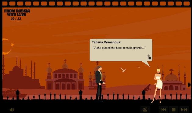 Dans l’esprit seventies et coloré du dessin animé Archer, le site brésilien Entretenimento propose rien moins qu’une visite en jeu de chaque épisode de la vie cinématographique de l’espion le plus célèbre de sa Majesté.